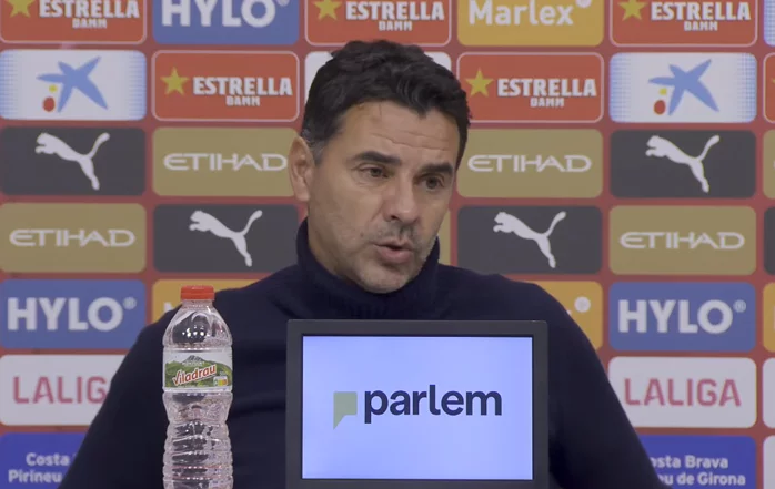 "Sí, Albert. La situación no la miro, os lo juro por Dios. Solo les decía a los jugadores: no miro la clasificación cuando éramos últimos. La sensación mía como entrenador es pensar en el jugador, en el equipo y en la competición, cosa que me traicioné cuando en las primeras cinco jornadas no pensé ni en el jugador ni en la competición y pensé en mí como equipo, en jugar de una forma, de jugar de una forma, de jugar de una forma, y los jugadores no estaban preparados para jugar así con ese riesgo, con esa sensación de buscar portería rival, porque no teníamos automatismos, porque había once cambios en el equipo. Y once cambios y jugadores que están jugando y que se van a ir, y que saben que están en negociación. Eso es muy difícil de hacer. Y yo no lo supe ver. No quise verlo. Y a partir de ahí me he concienciado de que necesito a mi equipo, que necesito… Hoy solo les he dicho antes del partido: estoy feliz porque veo un equipo. Chicos, vais a competir muy bien. Vamos a hacer un buen partido porque sois un equipo ya. Os veo reír. Os veo, entre comillas, putearos en el vestuario. Os veo haceros bromas. Os veo juntos. Os veo que conectáis, que estáis… ya ves que el equipo está. Ya ves que el equipo está. Y eso yo no lo supe ver: que antes no estaba en la competición. Y es algo que me hace saber que tengo que mejorar en esto. Porque sabía que el equipo iba a cambiar, sabía que necesitábamos vender, sabía que iba a haber fichajes. Porque a mí nunca me han engañado aquí. Y yo no lo supe ver. Es un error. Y a partir de ahí, en estos tres partidos tengo la sensación de que estamos siendo un equipo. Y eso me da mucha seguridad y mucha tranquilidad porque sé que ellos la van teniendo. Y ellos notan que sale un jugador y que está conectado. Y que no sale a hacer su partido, que sale a… ¿Cómo vamos a frenar al Madrid? Hoy Yasser Asprilla ha salido media hora, 25 minutos, y hace las ayudas que le hemos pedido, que ha hecho Víktor todo el partido. Joel Roca hace las ayudas que le hemos pedido a Bryan Gil todo el partido. Y eso provoca que tengan más seguridad como equipo. Y ahora creo que competimos como equipo. Ganaremos o perderemos, pero competimos como equipo. Y estos tres partidos que hemos hecho se acercan mucho al paso que tenemos que dar para ser muy competitivos en esta Liga."