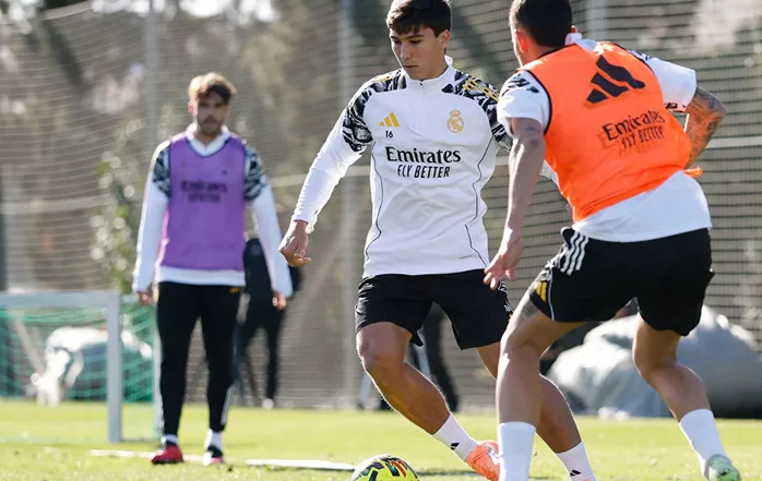 El resto de la plantilla comenzó con un calentamiento articular sobre el césped y, posteriormente, llevó a cabo diversos ejercicios de circulación de balón y presión y circuitos de finalización a portería. A continuación, los jugadores realizaron trabajo de finalización y disputaron exigentes partidos de 3 contra 3 en un campo de reducidas dimensiones. La sesión terminó en el gimnasio con patrones de aceleración. Huijsen, Alaba y Carvajal trabajaron en el interior. Raúl Asencio, recuperado del proceso viral, se ejercitó con normalidad.