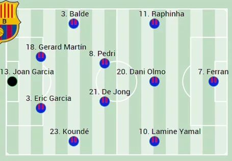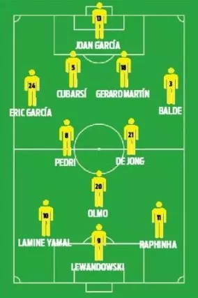 En cuanto al once titular, hay dudas sobre si jugadores como Koundé o Ferran volverán al once, después de haber sido suplentes el anterior partido conta el Deportivo Alavés. Su presencia en el once titular devolvería a la suplencia a otros como Gerard Martín y Robert Lewandowski. Quien sí parece estará con total seguridad en el once titular es Pedri González, después de tener sus primeros minutos tras su lesión.