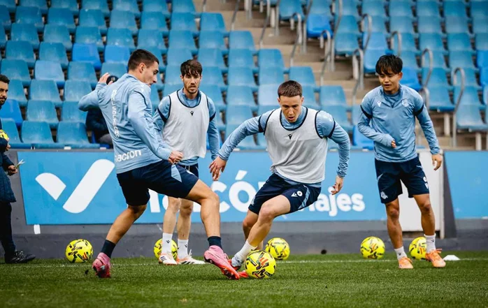 El técnico del conjunto txuri urdin, Sergio Francisco, ha dirigido una sesión en la que siguen sin poder ejercitarse con el grupo los lesionados Igor Zubeldia, Mikel Oyarzabal, Yangel Herrera y Orri Oskarsson, que se mantienen como dudas una semana más a la espera de evolución y de que puedan acercarse a la dinámica del equipo en las próximas sesiones.
