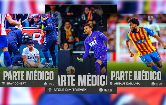 El Valencia CF ha comunicado este martes el parte médico de Eray Cömert, Stole Dimitrievski y Arnaut Danjuma, todos ellos con problemas físicos que condicionan su disponibilidad a corto plazo. El central suizo Eray Cömert sufre una lesión en la musculatura abdominal, producida durante el encuentro del pasado sábado ante el Atlético de Madrid. El defensor ya ha iniciado tratamiento médico, fisioterápico y un proceso de readaptación en la Ciudad Deportiva, a la espera de evolución clínica.