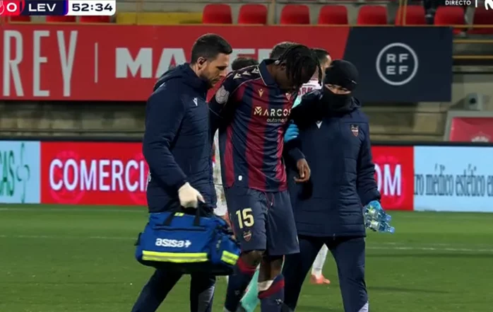 El delantero centroafricano del Levante, Goduine Koyalipou, tuvo que pedir el cambio solo ocho minutos después de ingresar al terreno de juego del Reino de León, este miércoles por la tarde, durante el encuenro correspondiente a los dieciseisavos de final de la Copa del Rey. El futbolista, que arrastraba problemas físicos en las últimas semanas, entró en el descanso por Olasagasti, pero en el 53 notó un nuevo percance físico, viéndose obligado a pedir las asistencias y ser sustituido por Iván Romero.