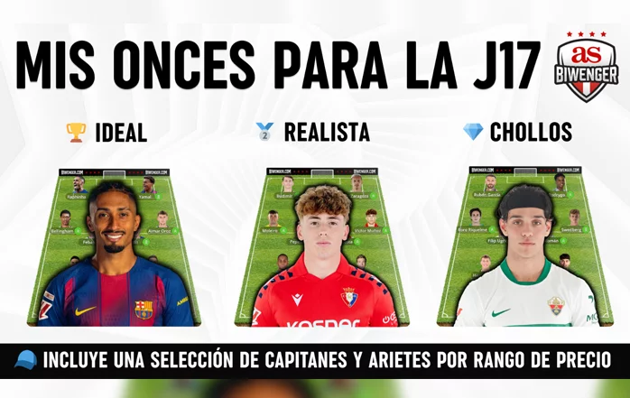 Jornada 17: Once Ideal, Realista y de Chollos + Picks de Capitán y Ariete, por Scouting BWG