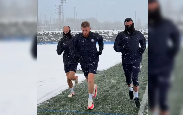 El técnico del conjunto vitoriano, Eduardo Coudet, ha dirigido una sesión atípica, ya que el entrenamiento previsto inicialmente para la mañana fue aplazado por el intenso temporal de nieve y frío. Finalmente, el cuerpo técnico optó por trabajar por la tarde, combinando ejercicios en el gimnasio con trabajo sobre el césped, limitado a varias franjas sin nieve que los trabajadores del club lograron habilitar para permitir que los jugadores pudieran trotar y completar parte del trabajo físico. Una jornada condicionada por el clima, pero aprovechada para mantener la carga y no alterar la preparación del equipo de cara al compromiso liguero. No hay bajas por lesión, aunque Denis Suárez por cláusula y Benavídez por sanción no están disponibles.