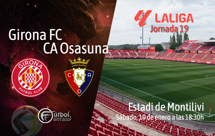 El Girona recibe este sábado 10 de enero de 2026, a partir de las 18:30 horas, a Osasuna en un duelo correspondiente a la jornada 19 de LaLiga. El conjunto catalán llega situado en la 15.ª posición, con dos victorias, dos derrotas y un empate en sus últimos cinco encuentros, con el objetivo de seguir alejándose de las posiciones del descenso, mientras que Osasuna ocupa la 13.ª plaza tras sumar dos victorias, dos empates y una derrota en el mismo periodo, también con la vista puesta en encontrar la tranquilidad en la tabla.