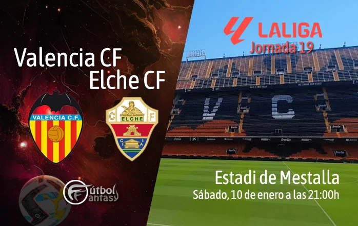 El Valencia y el Elche se enfrentarán este sábado 10 de enero de 2026, a partir de las 21:00 horas, en el Estadi de Mestalla, en un partido correspondiente a la jornada 19 de LaLiga. El conjunto dirigido por Carlos Corberán, actualmente en la 18.ª posición, intentará romper la mala racha de resultados tras sumar tres empates y dos derrotas en sus últimos cinco encuentros ligueros y salir de las posiciones del descenso. Por su parte, el Elche de Eder Sarabia llega situado en la novena plaza, buscando mejorar su irregular dinámica de tres derrotas y dos victorias en el mismo periodo para seguir alejados de la zona baja de la clasificación. El encuentro se presenta además como un derbi valenciano, lo que añade un plus de emoción y rivalidad regional.