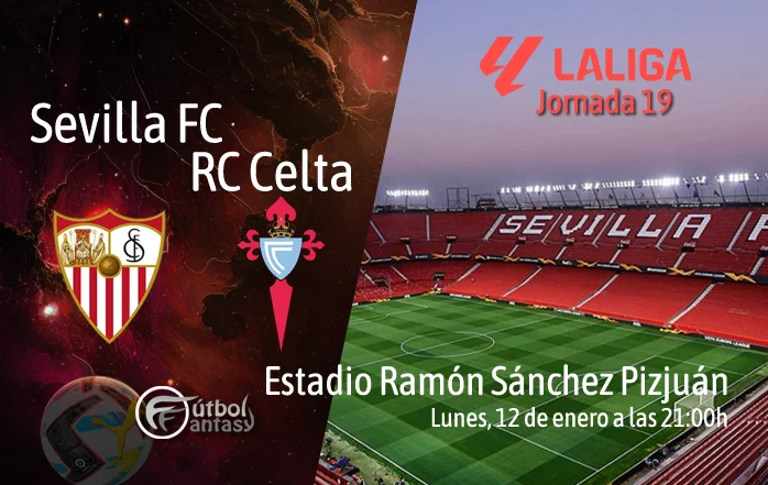 El Sevilla y el Celta de Vigo cerrarán la jornada 19 el lunes 12 de enero de 2026, a partir de las 21:00 horas, en el Estadio Ramón Sánchez-Pizjuán. El conjunto hispalense, dirigido por Matías Almeyda, llega a la cita situado en la 11.ª posición de la tabla tras una racha irregular en sus últimos cinco encuentros, con tres derrotas, un empate y una victoria, con la misión de volver a contentar a la parroquia sevillista tras el último tropiezo en casa. El Celta de Claudio Giráldez, por su parte, atraviesa un mejor momento de forma y ocupa la séptima plaza, con un balance reciente de tres victorias, un empate y una sola derrota, centrados en buscar un billete para Europa la próxima temporada.