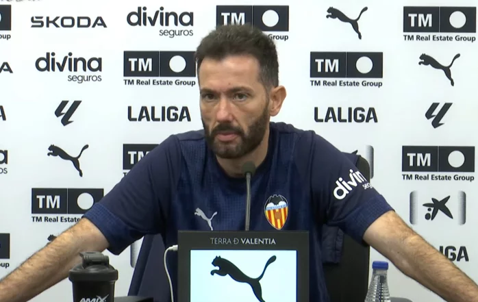 “Yo creo que al aficionado valenciano lo que más ganas tiene es de ver al Valencia volver a ganar partidos, eso es lo que quiere el aficionado valenciano y para eso está nuestro trabajo. El entrenador se deja la vida, se deja el alma, con una energía que os he comentado, la que tengo desde el primer día, con el dolor de ver al Valencia en la situación en la que nunca quiero ver a este club y muy responsabilizado para poder revertir este escenario.”