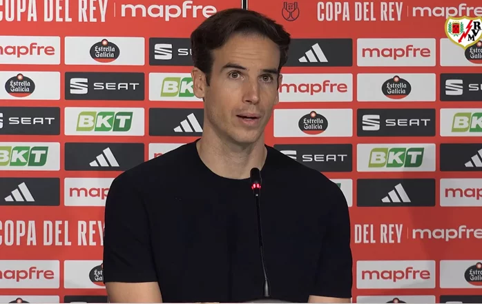 “No opinaré sobre las decisiones arbitrales, que es una línea que voy a intentar mantener firme mientras sea entrenador. Y respecto al partido, creo que había un momento en el que hemos podido desnivelar el resultado, no lo hemos conseguido. Siendo un partido muy igualado, lo han hecho ellos y, bueno, o te quedas con diez. Es verdad que lo intentamos, lo hemos hecho alguna vez; el año pasado contra el Aves, con diez pudimos ganar en Vallecas. Y bueno, lo intentamos, somos capaces de hacerlo, pero realmente es costoso para el equipo sobreponerse a estar en inferioridad. El año pasado en la noventa también en Copa nos sucedió y también perdimos en esta situación. Así que, bueno, nada, reponerse y pensar en Vigo.”