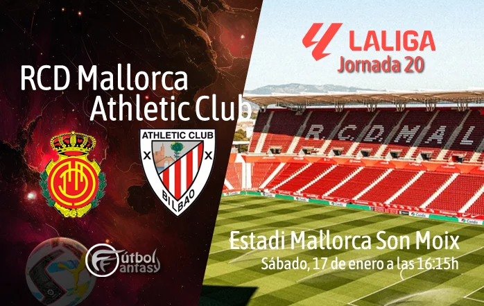 El Mallorca y el Athletic Club abrirán la tarde del sábado 17 de enero de 2026, a las 16:15 horas, en el Estadi Son Moix, en un encuentro correspondiente a la jornada 20 de LaLiga. El conjunto bermellón llega al choque en una situación delicada, situado en la 17ª posición de la tabla y con una dinámica irregular, tras sumar 1 victoria, 2 empates y 2 derrotas en sus últimos cinco partidos. El Athletic Club, por su parte, afronta la cita desde la 8ª plaza de la clasificación, aunque tampoco atraviesa su mejor momento de resultados, con un balance reciente de 1 triunfo, 1 empate y 3 derrotas, por lo que ambos equipos buscarán reaccionar y sumar tres puntos importantes. El conjunto bilbaíno quiere aprovechar la clasificación copera a cuartos para dar un impulso emocional en Liga.