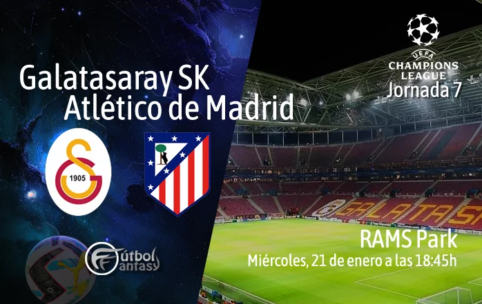 El Galatasaray y el Atlético de Madrid se enfrentarán este miércoles 21 de enero de 2026, a las 18:45 horas, en el Rams Park, en un duelo correspondiente a la séptima jornada de la Champions League. El encuentro se presenta clave para ambos conjuntos, que llegan con buenos números y con la intención de dar un paso importante en la clasificación. El conjunto turco afronta la cita con un balance de 3 victorias y 3 derrotas, alternando actuaciones sólidas con otras más irregulares y con el objetivo de defender una plaza de los playoffs. El Atlético de Madrid, por su parte, llega con mejores registros, sumando 4 victorias y 2 derrotas, y buscará un triunfo a domicilio que le permita consolidarse y alcanzar las ocho primeras plazas de la clasificación.
