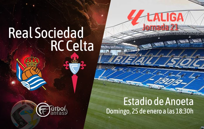 La jornada del domingo 25 de enero de 2026, Anoeta vivirá el enfrentamiento entre la Real Sociedad y el Celta, que se disputará a las 18:30 horas. El conjunto donostiarra llega a esta cita situado en la 10.ª posición de la clasificación, tras firmar en sus últimos cinco partidos un balance de 2 empates, 2 victorias y 1 derrota y con sensación de que el equipo está en dinámica ascendente en cuanto a resultados y juego, sobre todo tras vencer al Barcelona en el último compromiso liguero. El Celta, en cambio, atraviesa un excelente momento de forma, ocupa la 7.ª plaza y suma 4 victorias y 1 empate en ese mismo tramo de encuentros, con la motivación además de sentirse fuertes tanto en Liga como en Europa.