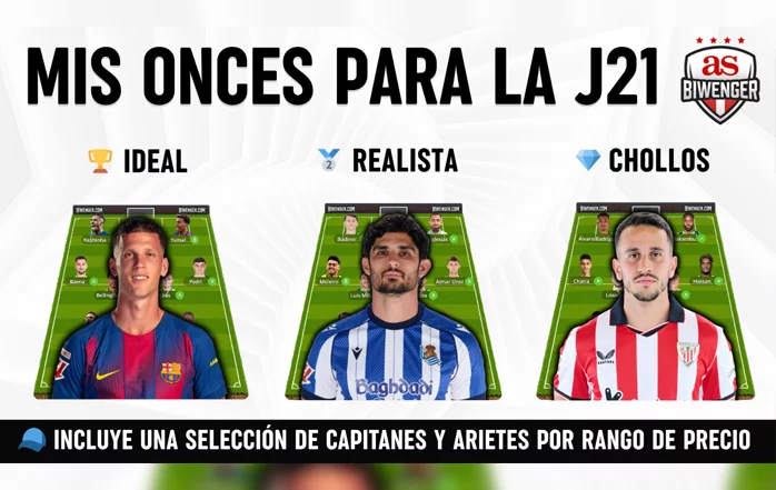 En este vídeo desgloso 3 onces completos para la jornada: el XI Ideal (sin límite de precio), el XI Top Realista (competitivo y más económico) y el XI de Chollos (jugadores low-cost con potencial). Al final tienes mi selección de capitanes y arietes por rangos de precio.