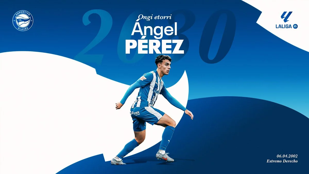 En el presente curso ha disputado 21 encuentros oficiales entre Liga y Copa, aportando tres goles y dos asistencias. Extremo rápido, desequilibrante y con llegada a zonas de finalización, Ángel Pérez ya se encuentra en Vitoria-Gasteiz para ponerse a las órdenes de Eduardo Coudet, llamado a ser una pieza de valor presente y futuro para la ofensiva albiazul.
