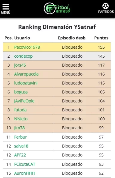 Porque aunque el reto no pudo completarse, sí tenemos ganador. El tablero final proclama a Pacovico1975 como líder absoluto de la expedición, con 155 puntos, a tan solo 45 del objetivo. Una cifra que resume mejor que ninguna otra la crudeza de este planeta estadístico: cerca del éxito, pero siempre al otro lado del espejo. Penalizaciones celebradas, errores buscados, once alineados al filo del abismo… y la sangre fría necesaria para sostener el riesgo hasta el último episodio.