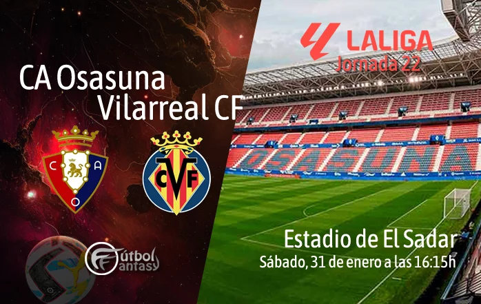 Osasuna y Villarreal se enfrentarán este sábado 31 de enero de 2026, a partir de las 16:15 horas, en El Sadar, en un encuentro correspondiente a la jornada 22 de Liga. El conjunto rojillo, dirigido por Alessio Lisci, llega al duelo en la 10ª posición de la clasificación tras sumar 3 victorias, 1 empate y 1 derrota en sus últimos cinco encuentros, con la intención de consolidarse en la zona media-alta de la tabla. El Villarreal, por su parte, ocupa la cuarta plaza, aunque atraviesa una dinámica irregular con 2 victorias y 3 derrotas en el mismo periodo, con el objetivo de mantenerse en puestos de Champions y mejorar sus sensaciones tras unas semanas complejas a nivel de resultados.