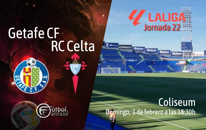 Getafe y Celta se enfrentarán este domingo 1 de febrero de 2026, a partir de las 18:30 horas, en el Coliseum Alfonso Pérez, en un encuentro correspondiente a la jornada 22 de Liga. El equipo madrileño, dirigido por Bordalás, llega a este duelo en una situación complicada, ocupando la 17ª posición de la tabla tras encadenar 3 derrotas y 2 empates en los últimos cinco partidos, con el objetivo de empezar a sumar de tres en tres para no verse en apuros al final de temporada. Por su parte, el Celta, entrenado por Claudio Giráldez, atraviesa un mejor momento y se sitúa en la 7ª plaza, con un balance de 3 victorias, 1 empate y 1 derrota en el mismo periodo, con la intención de mantenerse cerca de los puestos de cabeza.