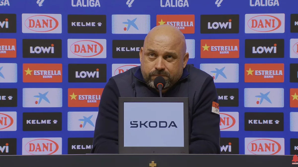 "Sí, a ver, peor que la primera vuelta del año pasado, con la situación que estábamos y la presión que teníamos, porque estábamos abajo, obviamente no es, pero sí que tenemos que volver a darnos cuenta de lo que somos. Yo lo llevo diciendo toda la primera vuelta, creo que los que estáis aquí lo sabéis, cuesta mucho ganar partidos en Primera División, a nosotros nos cuesta aún más, y tenemos que volver a coger el nivel que teníamos, el nivel al menos de no regalar partidos, de no cometer errores, de defender el balón parado en condiciones, de no encajar, y tenemos que volver a hacerlo urgentemente, esto es importantísimo, a partir de aquí volver a crecer. Pero ya te digo, con tanta Europa y tanta mierda de Europa, que queremos Europa todos y todo lo que queramos, a ver si nos estamos equivocando nosotros. Esto es lo más grave. Y para ir a Europa tienes que ganar, tienes que competir, igual que para salvarte. Y vuelvo a decir lo mismo: tenemos que volver a coger la dinámica que llevábamos, que si te toca en Camp del Cel tienes que ir a currar como cabrones, como hemos hecho en todos los campos; pues toca hacer ese tipo de partido, y vuelvo a decir que pienso que quizá nos estamos equivocando."