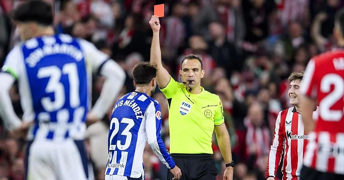 La Real Sociedad ha presentado alegaciones contra la tarjeta roja directa que vio Brais Méndez en el tramo final del derbi vasco disputado en San Mamés, un encuentro que terminó con empate a uno. El centrocampista fue expulsado en el minuto 83 por una supuesta “conducta violenta” tras un forcejeo con Aitor Paredes, ha generado gran polémica porque el árbitro Guillermo Cuadra Fernández no revisó la jugada con el VAR,pese a la trascendencia de la jugada.