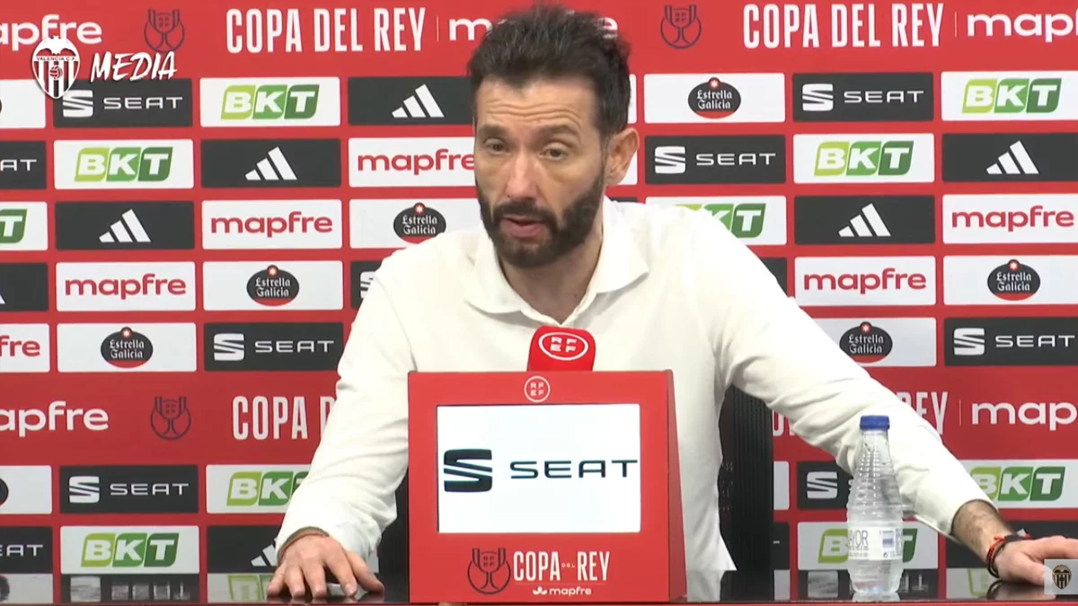 "Pues ahora está claro que lo primero es el dolor que tenemos es digerir este dolor porque es enorme para todos, para el staff, para los jugadores, para la afición porque la misma ilusión que tenía la afición la tenía el equipo las mismas ganas de pasar a la siguiente ronda la tenía el equipo y no nos queda otra ahora mismo que digerir la pena y el dolor de no haberlo podido conseguir sobre todo con nuestra gente en Mestalla, en una temporada dura para nuestra afición con el deseo de cambiar esa, como ha dicho un compañero, darle la alegría a la afición que tuviese esa ilusión que nos mantuviera hasta el final y ahora mismo esa es la lectura. A partir de aquí es verdad que la Liga no para, que el objetivo está ahí que tenemos que luchar mucho en la competición liguera y todas nuestras fuerzas y nuestros esfuerzos van a estar en eso en recuperarnos de este golpe y el domingo demostrar que somos un equipo competitivo al que le duele esa derrota y él quiere dar lo mejor de sí a su gente."