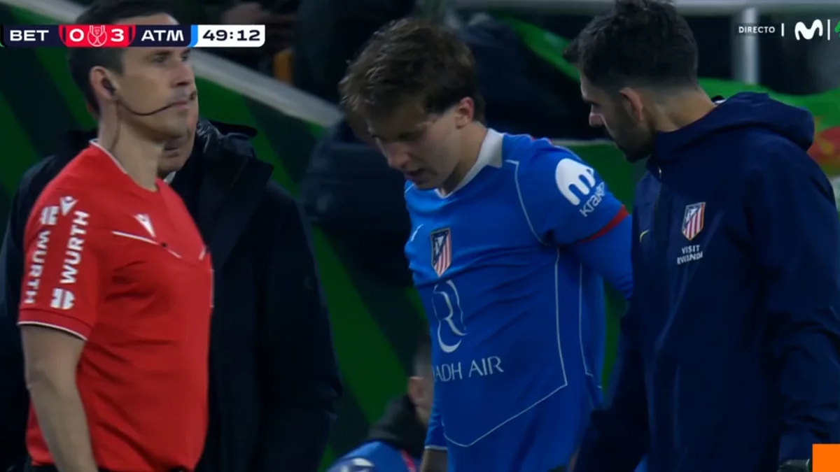 El centrocampista del Atlético de Madrid, Pablo Barrios, se vio obligado a abandonar el terreno de juego durante el encuentro de cuartos de final de la Copa del Rey frente al Real Betis tras sufrir una lesión muscular. El futbolista notó un pinchazo en la parte posterior del muslo derecho y pidió el cambio de inmediato, siendo sustituido en el minuto 50 por José María Giménez.