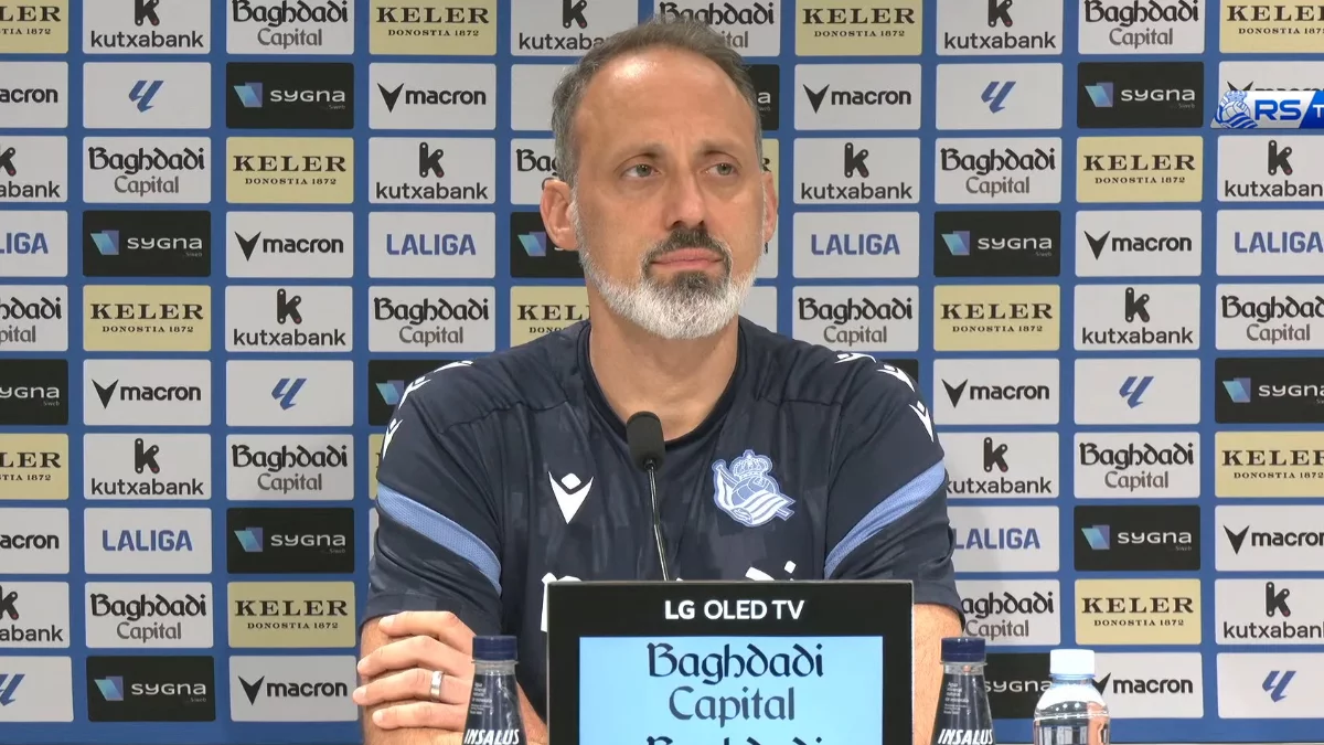 "Para mí no es importante lo que la gente de fuera diga. Es importante de lo que hablamos dentro. Y hablamos del partido de mañana. Y es un partido muy importante para nosotros, por muchas, muchas razones. Hay muchas, muchas razones por las que necesitamos rendir y conseguir los tres puntos mañana. Y no puedo pensar en una razón por la que no lo hagamos. Así que estamos muy centrados en el partido de mañana. Luka Sucic debería empezar con entrenamiento parcial el domingo. Espero integrarlo en entrenamiento completo el miércoles para que pueda ser una opción para el partido contra Mallorca. Take Kubo necesita tiempo. La última vez dije un par de semanas. Un par de semanas significa varias semanas, no solo una expresión amplia, sino que necesita semanas por delante. Y Rupérez lo mismo. Cuando ese margen empiece a hacerse más pequeño, lo comunicaré de otra manera, pero todavía necesitan semanas."