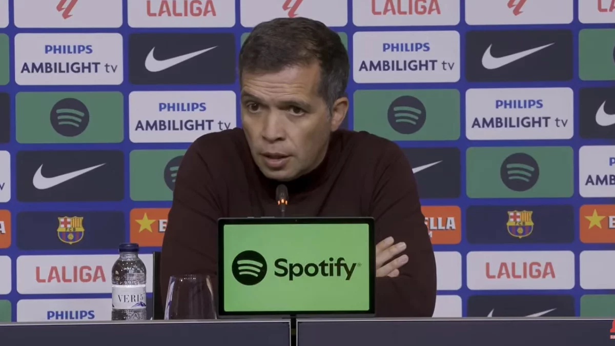 "Siempre genera movimientos entre líneas el Barça, tanto entre líneas como entre los espacios, entre central y lateral. Por eso hemos defendido más con línea de cinco, porque tanto a la izquierda como a la derecha, a la derecha más el extremo abierto y el lateral que rompe por dentro, y en el otro lado más el lateral abierto y el extremo rompiendo por dentro a la izquierda. Nosotros sabíamos que querían esos espacios. No hemos estado mal, hemos perdido 3-0 y dos goles son de córner. Cuando terminas el partido pierdes 3-0, pero si miras más al detalle, en tres goles dos son de córner. Ahí teníamos que estar un poco más concentrados, pero en el juego del Barça, que es muy bueno, has controlado casi siempre los espacios. Esos espacios entre líneas y los espacios entre central y lateral los has controlado casi siempre. Pero es verdad y nosotros los conocíamos y es por eso que hemos trabajado con línea de cinco para tener un central que pudiera cubrir ese espacio."