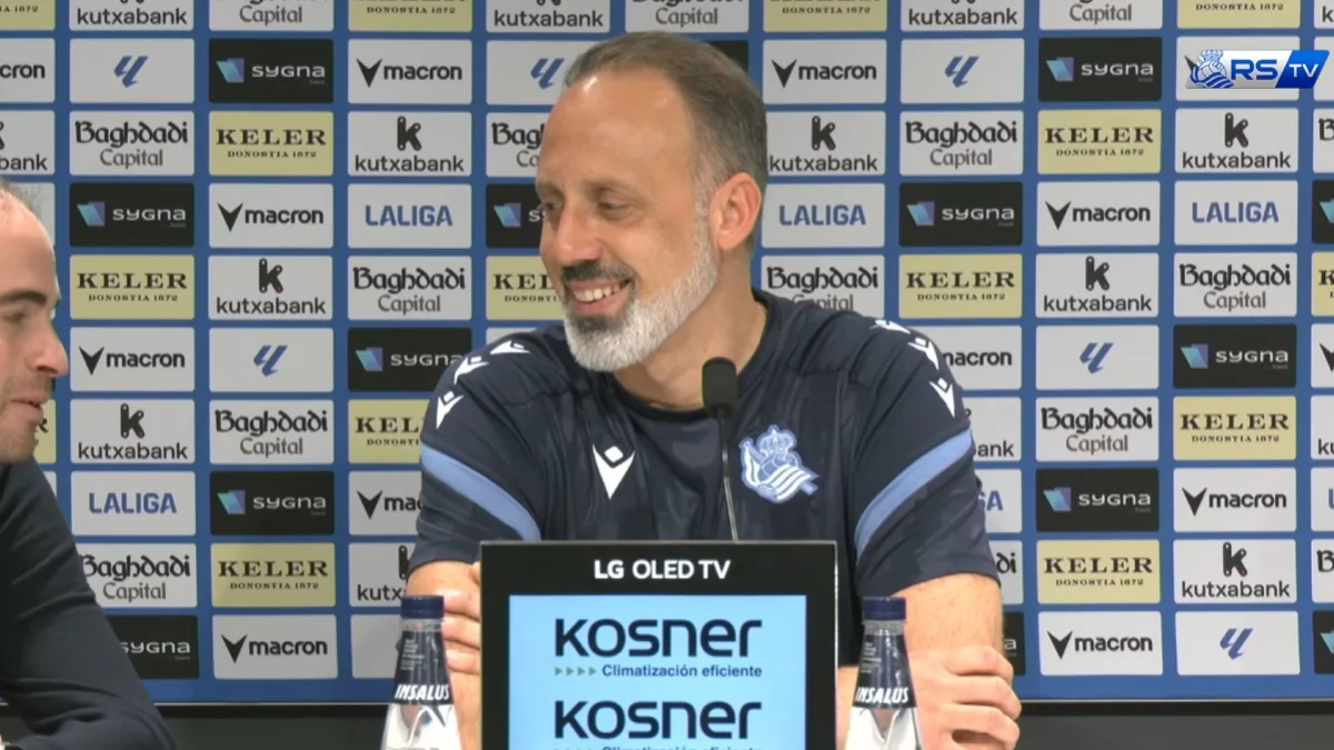 "Odriozola tiene un carácter que, a pesar de esta lesión grave, vuelve, sigue luchando y empujando hacia adelante, y ya está mirando hacia el momento en que pueda comenzar la rehabilitación. Gran carácter. Así que está bien. Luka Sucic y Barrenetxea están entrenando bien, fuertes, con buena energía. Sin duda son opciones para el partido de mañana y también para el miércoles. Aihen Muñoz, por desgracia, tuvo una pequeña lesión. En este momento es muy dudoso si estará disponible o no para el partido de mañana. Esperamos que el miércoles esté de vuelta, pero tenemos que verlo día a día."