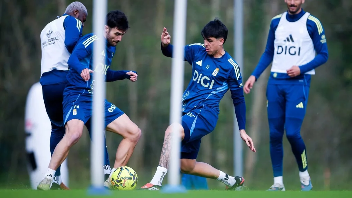 El técnico del conjunto carbayón, Guillermo Almada, ha dirigido una sesión en la que el trabajo táctico y la activación con balón han tenido un papel protagonista, combinando ejercicios de posesión en espacios reducidos con situaciones específicas orientadas a la presión tras pérdida y a la finalización. La principal novedad ha sido la presencia de Reina, que se ha entrenado con normalidad junto al resto de sus compañeros y estará disponible para la cita de Vallecas, ampliando las alternativas ofensivas del equipo. En el apartado de ausencias, Almada sigue sin poder contar con David Costas y Eric Bailly. Ambos zagueros continúan al margen del grupo y esta mañana se han ejercitado de forma individualizada junto al readaptador, centrando su trabajo en la recuperación física antes de reincorporarse a la dinámica colectiva.