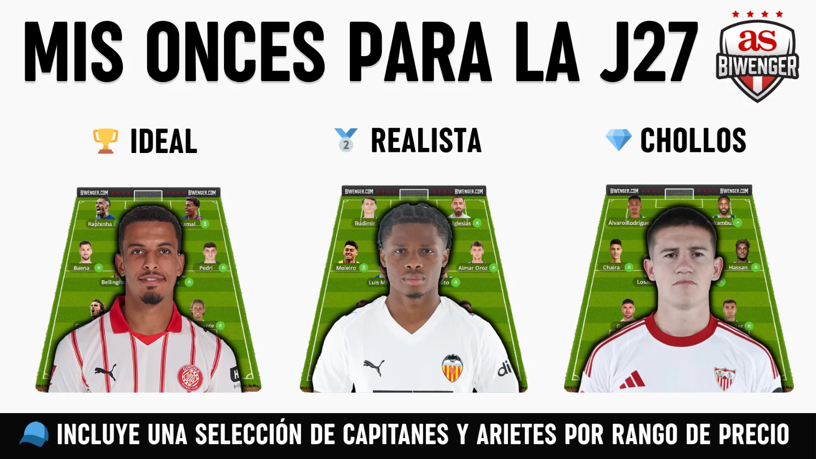 Jornada 27: Once Ideal, Realista y de Chollos + Picks de Capitán y Ariete, por Scouting BWG