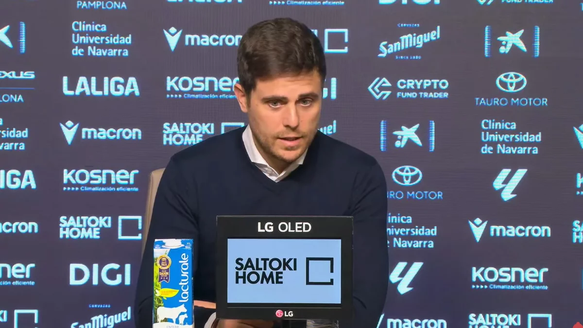 "El problema en la primera parte no es que buscamos esa banda izquierda, es que de ahí no nos íbamos, porque cuando vimos la alineación evidentemente el plan era muy claro: había que lateralizar mucho más, sobre todo acumularlos a un lado y encontrar el lado débil y volver al mismo lado donde había ventajas. De hecho, las ventajas: han habido dos situaciones en la primera parte donde encontramos con ventaja a Aimar Oroz y no hemos sacado absolutamente nada de esa ventaja, no por Aimar Oroz sino por toda la cadena izquierda o por la toma de decisión, por lo que sea; ya lo analizaremos bien en vídeo mañana o esta noche. O llegar ahí con todo su equipo basculado y cuando llegas a jugar el rombo, si no los mueves de un lado al otro, tiene mucha ventaja el lado balón, que era lo que pasaba, y no teníamos ninguna ventaja ni en el centro ni en el área, solo el lado débil que no aprovechábamos. Entonces el problema grande no ha sido que hemos ido siempre ahí, es que de ahí no nos íbamos. El segundo gol: llegamos tarde en un centro lateral peligroso, nos limpian la presión, es muy parecido al segundo gol de la ida, prácticamente idéntico; llegamos tarde en un centro lateral, nos limpian la presión. Luego ahí tenemos que ser un poco más inteligentes porque Muriqi es zurdo y cuando la frena evidentemente se la va a llevar para la izquierda, y teniendo también ayuda en un uno contra dos tenemos que hacer más."