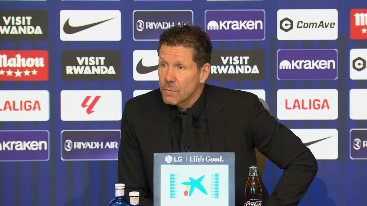 El técnico del Atlético de Madrid, Diego Pablo Simeone, ha atendido a los medios de comunicación este sábado por la noche, en la rueda de prensa posterior al partido contra la Real Sociedad, correspondiente a la jornada 27 de Liga, que se disputó en el Estadio Riyadh Air Metropolitano.