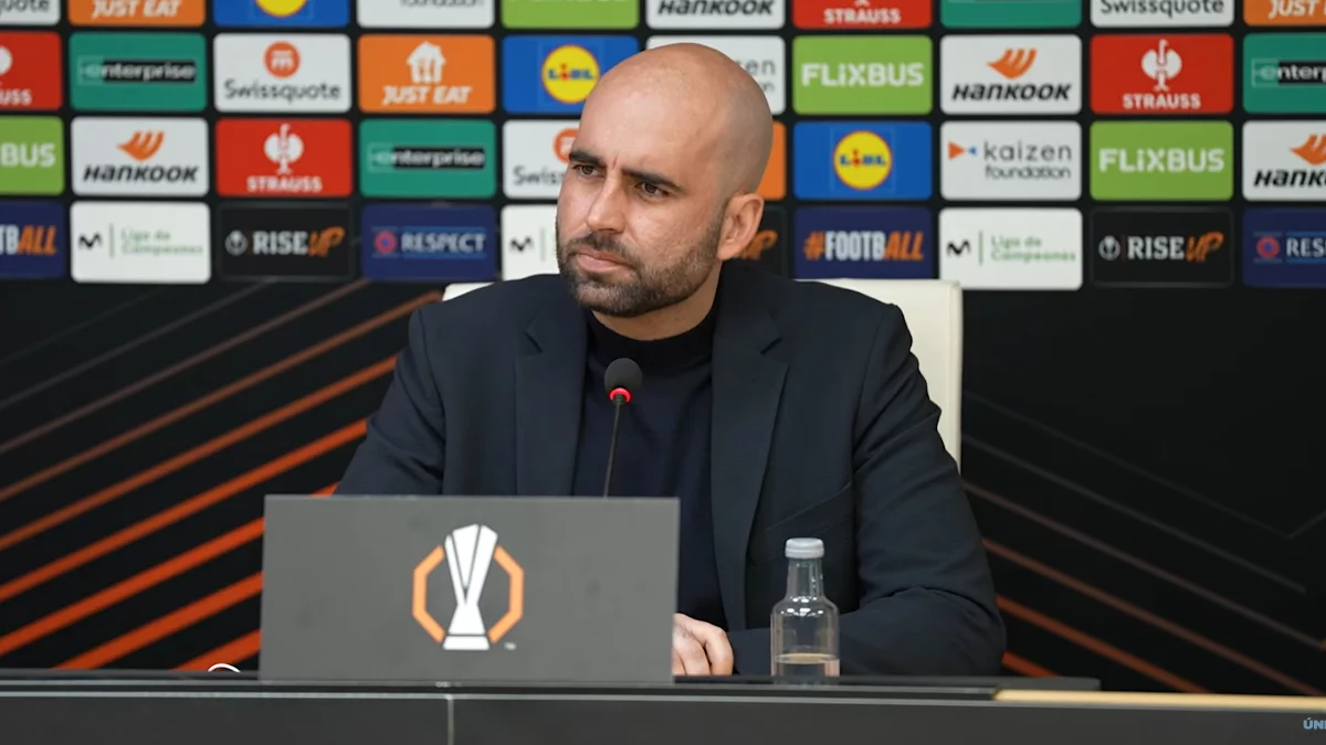 El técnico del RC Celta, Claudio Giráldez, ha atendido a los medios de comunicación este jueves por la noche, en la rueda de prensa posterior al partido contra el Olimpyque de Lyon, correspondiente a la ida de los octavos de final de la UEFA Europa League, que se disputó en el Estadio Abanca Balaidos.