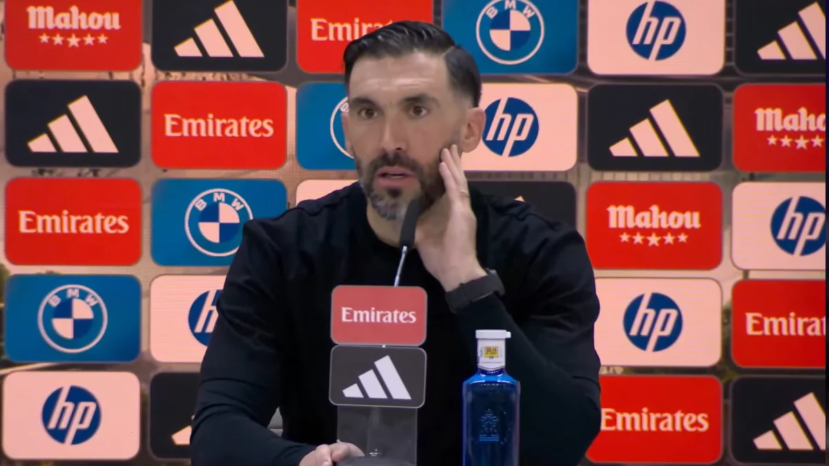 "A ver, yo entiendo que el Madrid tiene una exigencia absoluta, que queréis que todos los días gane 4-0 y arrase. Yo creo que el fútbol cada vez está más igualado, te puede ganar cualquiera, todos nos estudiamos mucho y bueno, la exigencia de este tipo de equipos es dar siempre su mejor nivel. Durante 70 partidos, 60 y pico que juegan estos equipos, a veces no es fácil. Pero bueno, tienen esa capacidad y sobre todo el Madrid, y sobre todo aquí en su estadio, para una situación que podría parecer un poco más complicada, poder hacer el partido que hicieron el otro día. Y eso en el fútbol, por eso nosotros también creemos en eso, porque estamos convencidos de que cuando llegue un resultado bueno, que creo que ya lo hemos merecido hace tiempo, seguramente la energía va a ser diferente y a partir de ahí todo es más sencillo. Desde luego que Álvaro está teniendo también la valentía para poner a esos jóvenes también en la necesidad, los conoce. La verdad que nos ha faltado un poquito ya con el 2-0, 3-0, un poquito de algo más de agresividad y ellos pues cuando emparejábamos creo que les complicábamos más, pero cuando llegábamos tarde nos encontraban bien las ventajas y bueno, tienen esa frescura, esa calidad. Es una de las mejores canteras del mundo, como no puede ser de otra manera, y evidentemente el Madrid siempre va a estar peleando por todo, eso no hay ninguna duda, porque es uno de los equipos más grandes del mundo."