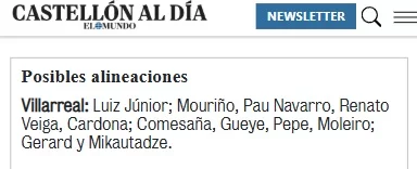 FútbolFantasy elegirá como prensa especializada del Villarreal a El Periódico Mediterráneo, Radio Vila-Real, Castellón al Día, Marca, As y Mundo Deportivo. Consulta los onces probables para la jornada 29 del Villarreal de cada medio de comunicación: