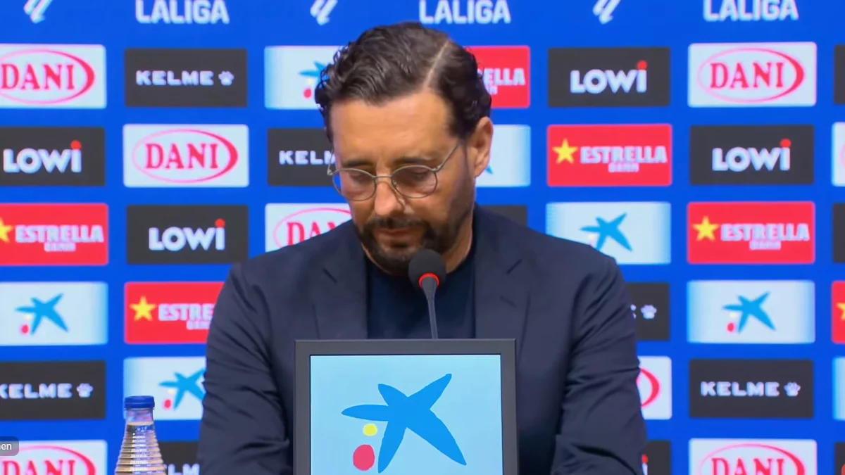 "Ha sido un partido difícil. El Espanyol venía de muchas jornadas sin ganar. Nos ganaron todas las jugadas, salieron muy intensos. Se anularon bien los goles, porque el ambiente estaba muy enrarecido con lo que había ocurrido el fin de semana anterior. Estaba el ambiente crispado y lo ha hecho francamente bien. El equipo se rehízo, supo aprovechar el balón parado, que es muy importante ponernos por delante. Ellos salieron muy intensos en la segunda parte. Obviamente con resultado adverso, necesitaban acortar distancias; lo han hecho, pero mi equipo ha sabido sufrir, ha interpretado mejor y hemos sumado tres puntos importantísimos porque no era nada fácil. Lo dije en la previa: el Espanyol es un equipo que, a pesar de llevar 11-12 jornadas sin ganar, ha habido jornadas que no lo ha merecido, sin ninguna duda; tiene un grandísimo equipo, una gran plantilla, muchas alternativas y la verdad es que ganar aquí no era sencillo."