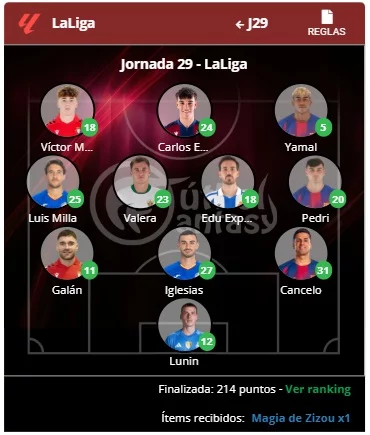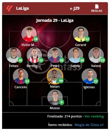 En cuanto al ranking general de LaLiga 25/26, el liderato se pone caliente con KvilAngel asaltando el liderato, con 4270 puntos. Muy de cerca le siguen KillBill73 y Aitzolath, con 4258 y 4241 puntos respectivamente. La pelea en la zona alta está más ajustada que nunca y promete emociones fuertes de cara a las próximas semanas.
