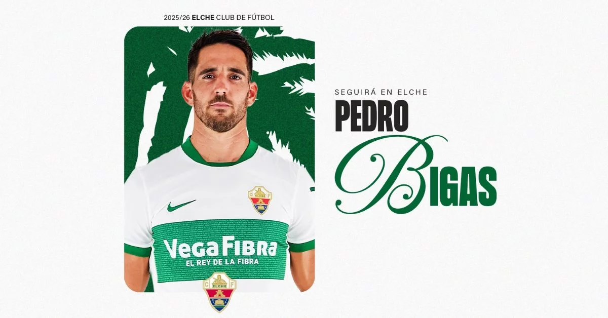 El Elche CF ha oficializado la renovación de Pedro Bigas, cuyo contrato finalizaba, extendiendo su vinculación con el club hasta junio de 2027. El capitán franjiverde continuará siendo un referente dentro y fuera del campo, aportando liderazgo, experiencia y solidez a la defensa ilicitana.