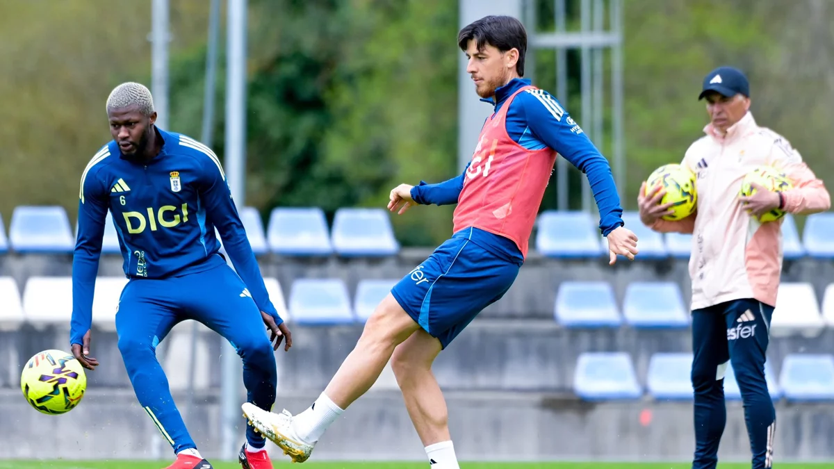 El técnico del conjunto ovetense, Guillermo Almada, ha dirigido una sesión en la que los tres internacionales que aún faltaban por reincorporarse trabajaron con normalidad junto al resto del grupo: Rahim, Fede Viñas y Nico Fonseca. De este modo, el cuerpo técnico va recuperando efectivos, aunque mantiene un parte de bajas importante para el duelo del domingo, ya que no estarán Luka Ilic, David Carmo, Leander Dendoncker, Lucas Ahijado y Ovie Ejaria. Además, desde el filial participaron Pablo Agudín, Yakubu, Lamine, Marco Esteban y Castri, mientras que una de las imágenes más llamativas del entrenamiento fue la presencia de Alberto Reina trabajando a un ritmo inferior al de sus compañeros, si bien, en principio, su presencia ante el Sevilla no parece peligrar. También llamó la atención que Álex Forés no se calzara las botas durante la sesión.