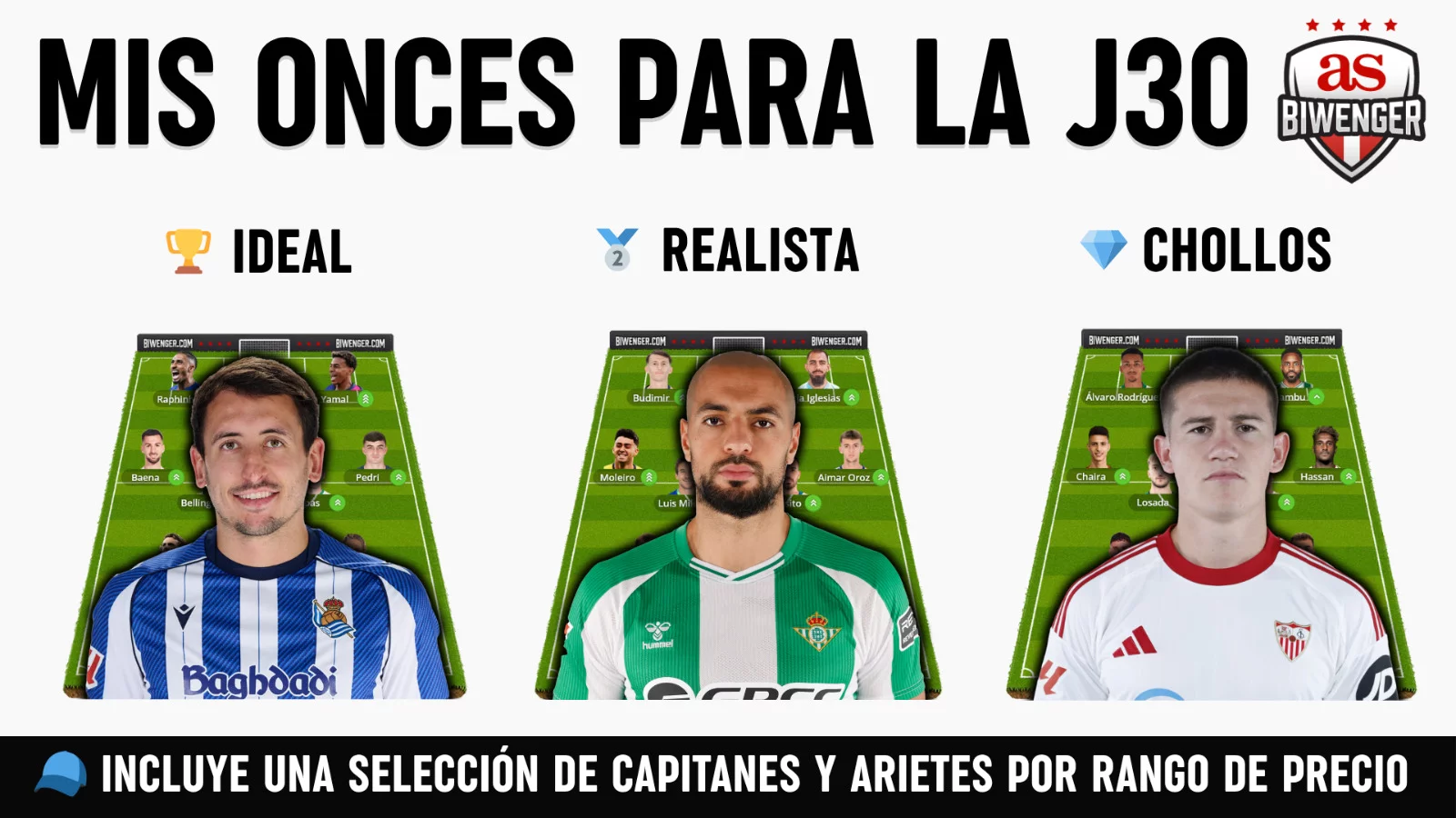 Jornada 30: Once Ideal, Realista y de Chollos + Picks de Capitán y Ariete, por Scouting BWG