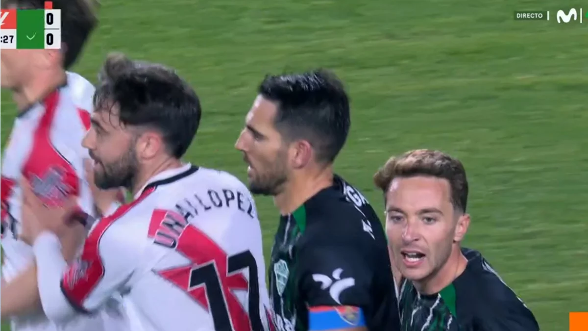 Pedro Bigas, capitán del Elche CF, fue expulsado este viernes en Vallecas y no podrá jugar la próxima jornada ante el Valencia. El central vio la segunda tarjeta amarilla en el minuto 39 del duelo frente al Rayo Vallecano, disputado este 3 de abril de 2026, tras una acción en un balón parado en la que levantó la pierna de forma imprudente y golpeó en la cabeza a Óscar Valentín. La primera amonestación también llegó por falta.