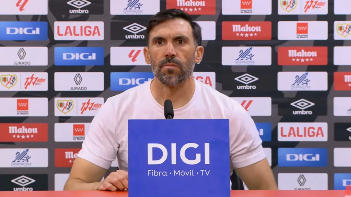 "Con respecto a Buba Sangaré, creo que ha hecho un gran partido. Es verdad que le han ganado ahí un poco la posición en la jugada del gol, teniendo que jugar en esa segunda parte como ha jugado, más de tercer central, pero creo que, a pesar de la juventud, ya venía demostrando toda esta energía, toda esta capacidad de competir, toda esta valentía que tiene y, bueno, había pedido el cambio un poquito antes por cansancio, porque es verdad que hace tiempo que no juega 90 minutos, pero, bueno, simplemente más fatiga que otra cosa. ¿Y lo positivo? Pues muchas cosas, muchas cosas. La verdad, es un partido que no nos va a hacer nada de daño, estoy convencidísimo; así como otras derrotas sí que nos pueden dejar ese ‘hoy nos ha faltado esto, lo otro, tal’, hoy no nos va a hacer absolutamente nada de daño y, si no, me voy a encargar yo de que sea así. Sí que, por supuesto, se lo he dicho a los jugadores, tenemos que hacer ahora una semana de rigor, de responsabilidad, de saber dónde estamos, de saber lo que nos estamos jugando y prepararnos con todo el hambre, con todo el deseo y con toda la profesionalidad para que, con nuestra gente, hagamos un partidazo contra el Valencia. Pero eso, creo que hemos jugado con personalidad, hemos jugado con valentía, hemos hecho muchas de las cosas que queríamos hacer, hemos generado ocasiones, creo que nos hemos impuesto en muchas cosas al Rayo, que en este campo no es nada fácil de hacer; con uno menos el equipo ha sufrido poco, ha defendido bien y luego, pues, gestos pequeños: le quitaba a Rafa Mir y lo ha entendido perfectamente, Pedro Bigas estaba ahí jodido, ha pedido perdón, y lo hueles, lo hueles, la complicidad. Somos una familia, estamos unidos, creemos, y vamos a ponerlo todo y lo vamos a conseguir."
