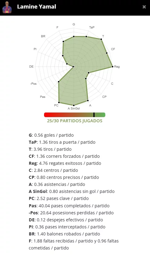 Este rediseño no solo mejora la estética del polígono, sino también su interpretación, facilitando que el usuario identifique de un vistazo qué tipo de futbolista está analizando y en qué apartados destaca realmente.