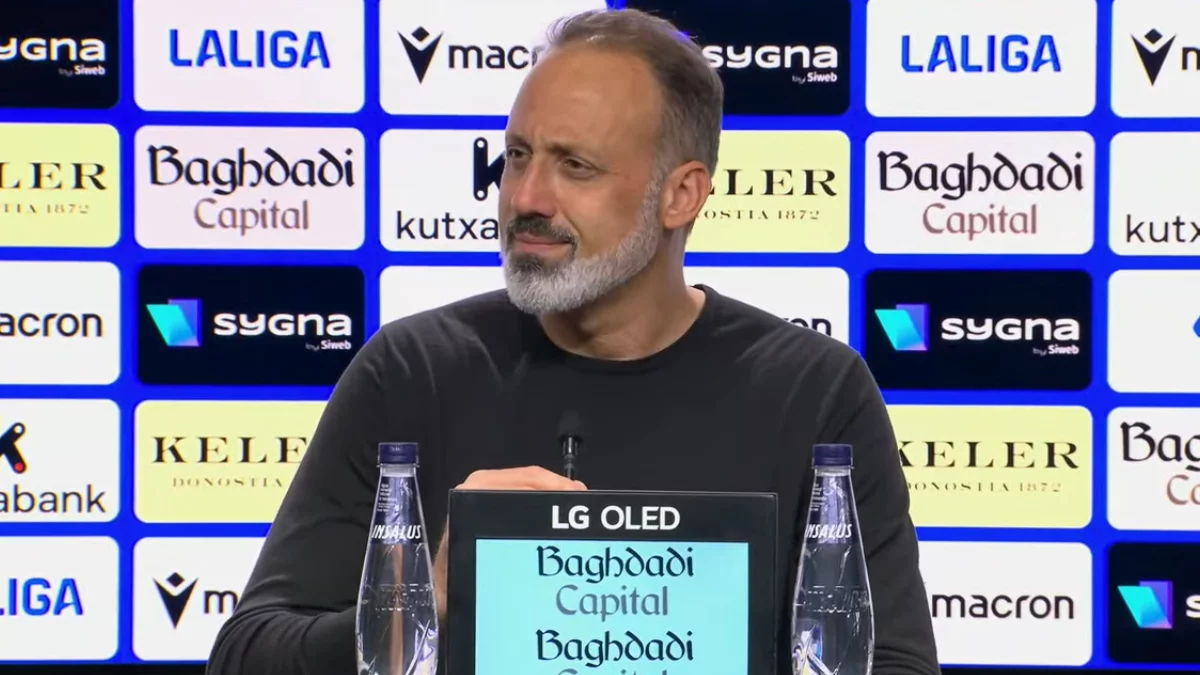 "En general soy una persona muy optimista. No me gusta poner límite a nada de lo que hacemos, así que seguimos atacando ambas competiciones. Nos quedan nueve partidos y, como dije antes, hay mucho posible. Hay mucho posible y todos lo sentimos. Creo que vosotros lo sentís, nosotros lo sentimos. Estamos en un buen momento. Estamos ganando partidos. Tenemos, creo, cuatro partidos en casa todavía. Hoy fue el quinto de nueve. Somos fuertes con nuestra afición. Lo sabemos y queremos continuar. Todavía no quiero fijar ningún objetivo. No es el momento. La próxima semana tenemos al Alavés. Ese es el partido más importante para nosotros. Es el siguiente partido. Luego, por supuesto, después de la final, entonces posiblemente con los últimos siete partidos podremos fijar algunos objetivos, que sean más concretos. Pero en este momento no es el momento adecuado. Es una pregunta parecida. Voy a volver a rodearla. Creo en el máximo éxito, en todo lo que sea posible. Y empujamos por ello. Pero siempre es el siguiente partido el que más importa. Si hoy no hubiéramos ganado, entonces sería menos probable rendir a nuestro máximo nivel en la final y también en la liga. Así que el próximo partido contra el Alavés es decisivo. Estamos ahora en la fase decisiva. Todo lo que hemos hecho hasta ahora ha sido para colocarnos en una buena posición para terminar. Para terminar. Y ahora queremos terminar fuertes en ambas competiciones. Todo es posible. Por supuesto, conocemos la calidad de nuestros jugadores. Conocemos la importancia y el valor que nos aportan tanto Mikel Oyarzabal como Gonçalo Guedes. Gonçalo Guedes debería haber marcado al menos un gol hoy. Creo que no estaba demasiado contento por ello. Pero también dio la asistencia del segundo gol y tuvo muchas ocasiones. Así que sí, son jugadores muy importantes. Pero hay más. Hay más que solo uno o dos jugadores. Hay una estructura dentro del equipo. Tenemos un mecanismo que está funcionando. Tenemos jugadores con roles claros. Y estoy muy contento con muchas actuaciones de muchos jugadores."