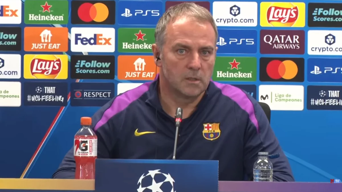 El entrenador del FC Barcelona, Hansi Flick, ha atendido a los medios de comunicación este martes por la tarde, durante la rueda de prensa posterior al partido contra el Atlético de Madrid, correspondiente a la ida de los cuartos de final de la UEFA Champions League, que se disputará en el Spotify Camp Nou.