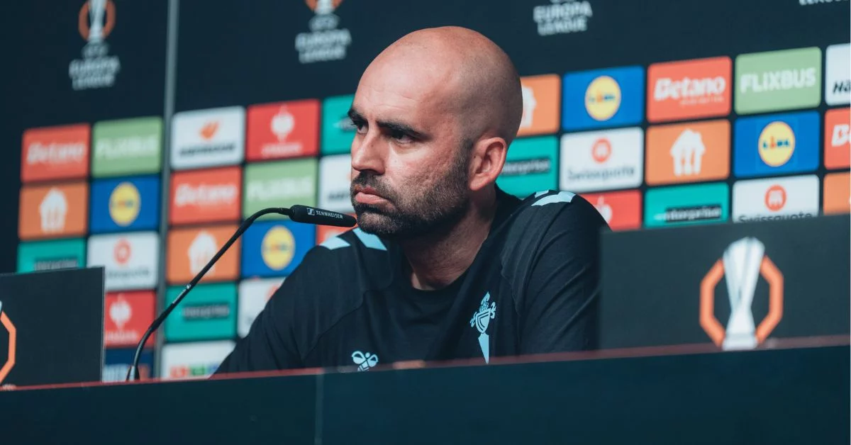 "Buenas tardes. El resumen es que estamos bien. Teníamos la duda de si Carl Starfelt iba a poder viajar y estar hoy, pero hemos considerado que era imposible llegar a este partido por cómo ha evolucionado su espalda y hemos preferido que no hiciera el viaje y que pueda recuperar para los partidos posteriores. Hugo Álvarez ya sabíamos, desde que salimos de Mestalla, que no iba a llegar; Mihailo Ristic tampoco, más Miguel Román, que evidentemente ya se pierde la temporada, y la sanción de Javi Rueda. Entra Antañón, que ya estaba en dinámica con nosotros últimamente, y el resto son jugadores del primer equipo. Contento de recuperar también a Matías Vecino y a Iago Aspas para que puedan estar disponibles para mañana. Veo al equipo tranquilo, ilusionado y con ganas de que llegue el partido y de poder estar en esta cita histórica para nosotros, con ganas de más."