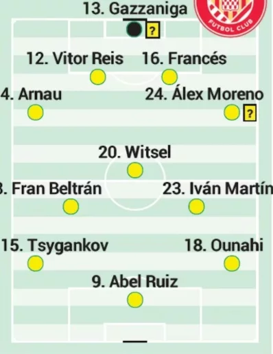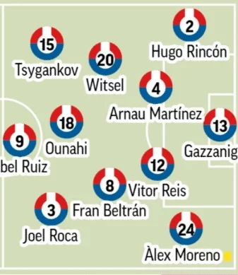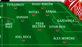El once, en un contexto normal, no debería presentar grandes cambios respecto al triunfo contra el Villarreal. No obstante, en una semana con partido lunes y viernes, habrá que evaluar a fondo el cansancio y estado físico. Por ello, futbolistas como Arnau o Blind, que terminaron más desgastados, no tienen plaza asegurada y los Rincón o Francés entran en la ecuación con fuerza. A partir de ahí, cualquier cosa puede suceder si hay que dosificar, con hombres como Lemar, Echeverri o Joel Roca para la zona de tres cuartos o retrasando a Iván Martín y Beltrán no llega al cien por cien. Arriba, todo apunta a que Abel Ruiz sustituirá al lesionado Vanat.