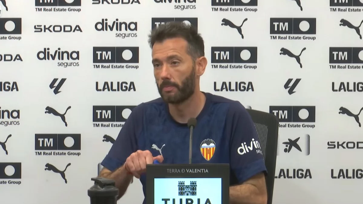 "Yo creo que hablar de falta de exigencia sería hablar de una excusa que no tiene que ver con todo lo que pasa en un partido. Entonces nunca me voy a apoyar en excusas. Insisto en que todos los jugadores y todas las personas que pertenecen al Valencia pertenecen siendo conscientes de la exigencia que representa este club y defender esta camiseta. Va implícita cuando uno forma parte de esta institución. A partir de ahí, a veces conseguimos rendir al nivel que queremos rendir, a veces el rival es capaz de rendir mejor que nosotros. Entonces nosotros nos centramos en aquello que hacemos en el campo. El rendimiento tiene que ver con defender bien, con atacar bien, con competir, con ganar aspectos, con ganar duelos, con ser competitivos en el campo y demostrarlo. Hay veces que somos capaces de hacerlo y conseguimos resultados, y hay veces que no somos capaces de hacerlo. La exigencia siempre es que vayamos a cada partido con la intención de ser capaces de hacerlo, de competir el partido desde jugarlo y desde competirlo a la exigencia que ese partido va a tener. Cuando lo conseguimos estamos muy contentos, felices, corregimos detalles que tenemos que corregir porque nunca hay un partido perfecto y le damos importancia a aquello que hemos hecho bien para poder insistir. Y, cuando no lo conseguimos, como la semana anterior, tenemos que mirar qué es lo que no hicimos bien. Nos falló la parte de ataque, nos falló la parte de defensa, nos falló la parte competitiva, que no nos hizo rendir al nivel que nosotros tenemos que rendir porque podemos rendir. Y es así como vivimos, y es así como analizamos, y es así como sentimos nuestro trabajo."