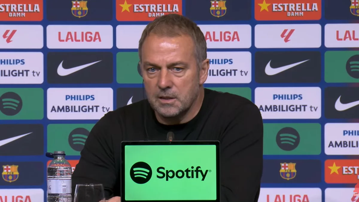 El entrenador del FC Barcelona, Hansi Flick, ha atendido a los medios de comunicación este sábado por la tarde, durante la rueda de prensa posterior al partido contra el RCD Espanyol, correspondiente a la jornada 31 de Liga, que se disputó en el Spotify Camp Nou.