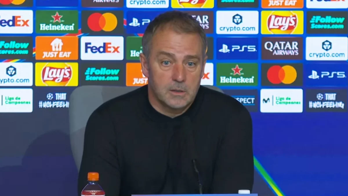El entrenador del FC Barcelona, Hansi Flick, ha atendido a los medios de comunciación este martes por la noche, en la rueda de prensa posterior al partido contra el Atlético de Madrid, correspondiente a la vuelta de los cuartos de final de la UEFA Champions League, que se disputó en el Estaido Riyadh Air Metropolitano.